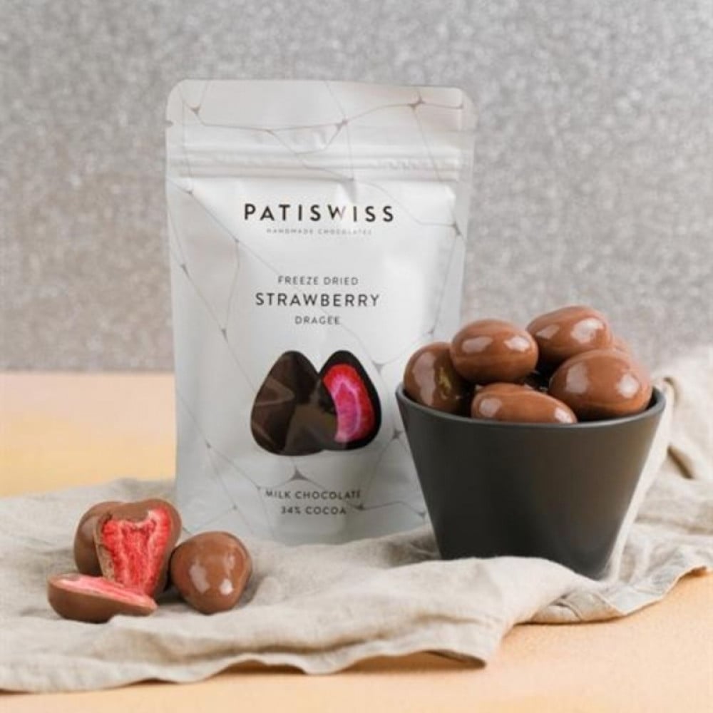 حبات الفراولة مجففة بالشوكولاتة بالحليب من باتي سويس